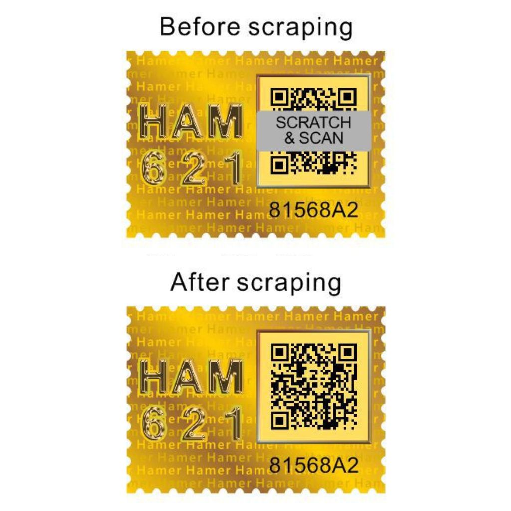 HamerGuard™ uses a holographic QR sticker with a protective scratch layer. Scratch only when ready, then scan to access a secure authenticity confirmation page.